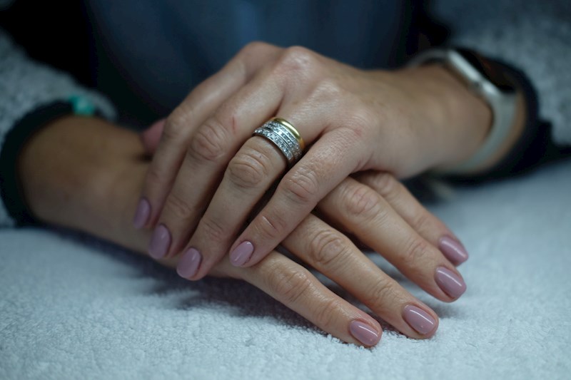 Her files topplakken av, deretter fjernes gelelakken med aceton og folie. Neglebånd skubbes tilbake, neglene klippes og files før det legges neglebånds olje og en god fuktighets krem.